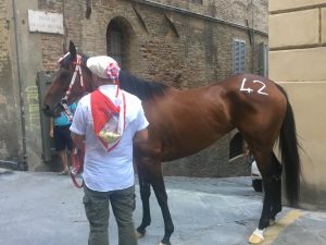 Siena is divided into 17 districts known as contrade, which are named after animals or symbols. The residents in these districts are all proud of their own contrada. On July 2nd and August 16th of each year, 10 contrade are selected to participate with their own horses and jockeys.