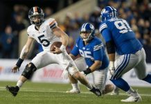 The Virginia Cavaliers (6-3, 4-2) fell to #25 Brigham Young Cougars in a high-scoring 66-49 game. Head coach Bronco Mendenhall returned to Provo, Utah,...