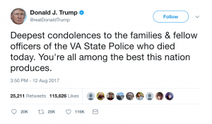 “Deepest condolences to the families & fellow officers of the VA State Police who died today. You’re all among the best this nation produces,” read the post on Trump’s Twitter page.