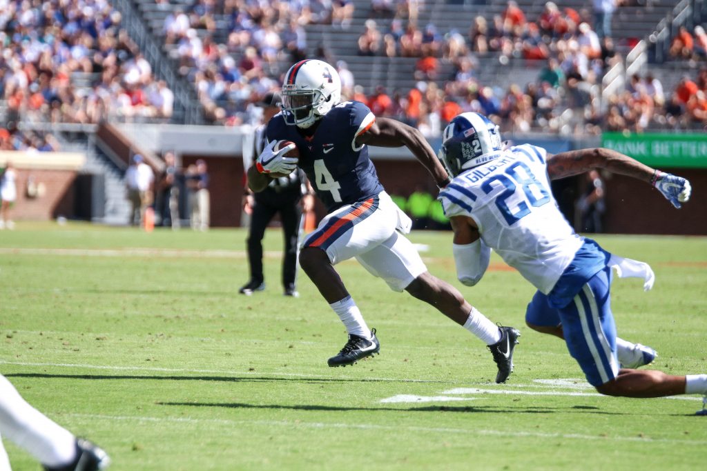 The Cavalier’s defense stepped up in a big way in a game in which their offense was slow starting, and Blanding, a team captain, led the charge. His 58-yard interception return for a touchdown less than three minutes into the game put Virginia’s first points on the board and set a tone for the day. Additionally, his leadership in the back of the secondary was a huge reason Duke was only able to complete a third of their passes. Blanding was second on the team with eight tackles, and he had a crucial pass deflection in the fourth quarter that prevented a touchdown pass. He’s been an important player for the Cavaliers for the last few seasons, and on Saturday he was a star once again, showing why he was a preseason second team All-American.