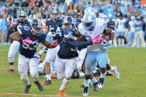 Virginia will head south to Chapel Hill this Saturday to face the UNC Tar Heels in the Cavaliers’ first ACC road game of the season. UNC has started the season rather poorly, having won only one of their first six games. They lost a number of players to graduation or the NFL draft, including starting quarterback and second overall draft pick Mitch Trubisky, and have struggled this year to stay healthy. It has shown on the field – the Tar Heels average only 25.6 points scored per game, 93rdin the nation, while conceding 33 per game, tied for 102nd. Still, despite UNC’s struggles and UVa opening as 3pt favorites in Las Vegas, ESPN’s Football Power Index match-up predictor gives the Heels a 62.4% chance to win the game. The Cavaliers will need to carry the momentum from their three-game win streak into a game in which their opponents will be desperate for a win. Something to watch: the Tar Heels allow over 240 rushing yards per game to opposing offenses, and UVa has run the ball much more successfully the last few weeks. It will be important to establish a ground game early on Saturday will be important if the Cavaliers are going to secure the win.