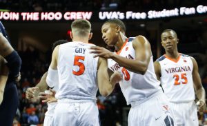 The Cavaliers started very slowly in the first half, shooting only 34.8% and scoring 11 of their 29 points from the charity stripe. Second year guard, Kyle Guy fueled the team’s offense in the half, scoring 14 of his 16 total points in the period, including two, three pointers. Senior forward Isaiah Wilkins also got off to a hot start, making three of his first four attempts to go into the break with 9 points. Devon Hall, the other senior on the team, also added 6 points in the opening 20mins, making both of his two field goal attempts. The rest of the team was slow to start, going a combined 0-15 and adding no additional points. However, the team collectively played very good defense, holding UNCG to 26% shooting and only 20 points in the frame.