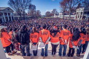 On Wednesday morning, Hoos walked out of their classes and congregated in front of the Rotunda to show support for the 17 slain students and faculty members from Marjory Stoneman Douglas High School in Parkland, Florida.