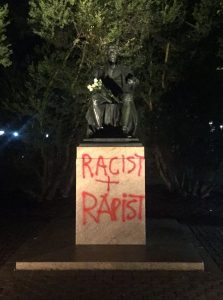 Black Lives Matter Charlottesville released a statement on their Facebook page accompanying a picture of the recently defaced statue. It read:”The truth hurts. We are all fallible creatures. We all have good parts and bad parts intermingled. The problem with the way our founding fathers are viewed is that they are not allowed to be human. They have been elevated to God like status and therefore can no longer inhabit the negative parts of their own life.”
