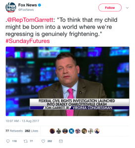 Congressman Thomas Garrett appeared on Fox News several times over the weekend and spoke out strongly against the protesters.