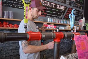 Minnerly explained how Snowing in Space has around ten flavors on tap. Typically three of those rotate while there are seven flagships that the shop always keeps in stock. One of their flagships is the “Big Blue Thing,” which has notes of blueberry and chocolate.