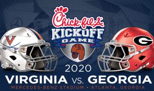 Bronco Mendenhall over the past week has scheduled the UVA Football Team to play in the 2020 Chick-Fil-A Kickoff game in Atlanta Georgia in the new Mercedes-Benz Stadium against the Georgia Bulldogs.