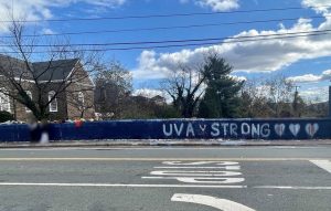 Many students came by to pay their respects, leaving flowers and writing messages to the victims on the bridge. The opposite side of the bridge was painted blue, with the message “UVA Strong” written against it.